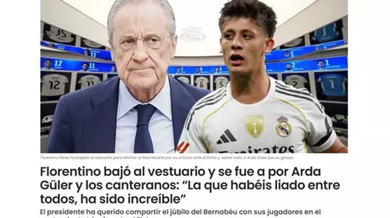Real Madrid, Elche karşısında aldığı 4-1'lik ezici galibiyetle, Barcelona ile şampiyonluk yarışında iddiasını sürdürdü aradaki fark artık sadece bir puana indi. Maç sonrası soyunma odasına inen başkan Florentino Perez galibiyeti tarihi bir golle taçlandıran Arda Güler ile birlikte tüm oyuncuları övdü. Güler'in muhteşem golü, altyapı oyuncularının Bernabéu'da üst düzey bir takıma karşı gösterdiği performans karşısında Perez "Burada yaptığınız her şey inanılmazdı" ifadelerini kullandı.
